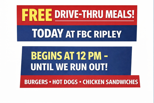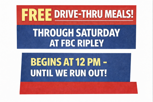 We are providing free hot meals today at the church beginning at noon until supplies run out. We are operating in a drive-thru format at our Family Life Center.